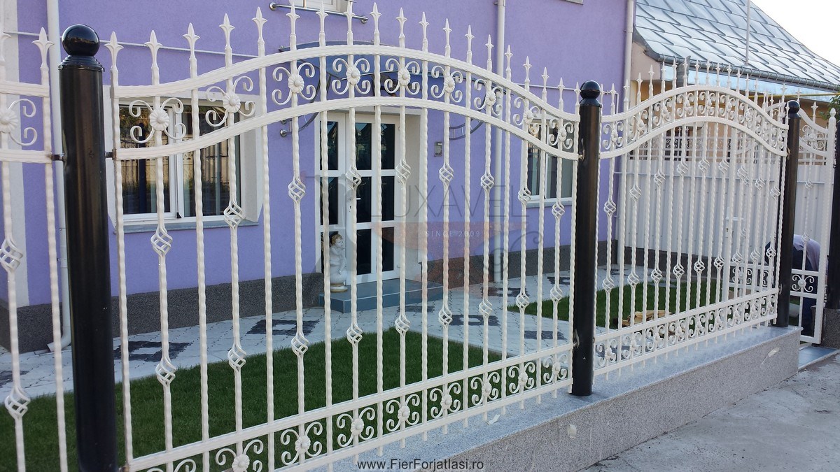 Va punem la dispozitie gard model deosebit G113, realizat integral din fier forjat cu multa atentie si meticuloziate pentru a putea oferi un cadru delimitator solid, robust si datorita elementelor decorative din fier forjat, produsul capata o nota deosebita de eleganta si rafinament.