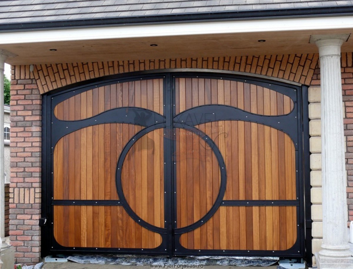 Va oferim poarta din fier forjat cu lemn model deosebit L016, realizata din fier forjat si lemn cu multa atentie si precizie pentru a putea oferi o solutie pentru calea de acces, sigura, solida, robusta si datorita elementelor decorative din fier forjat, poarta de acces capata o nota deosebita de eleganta.