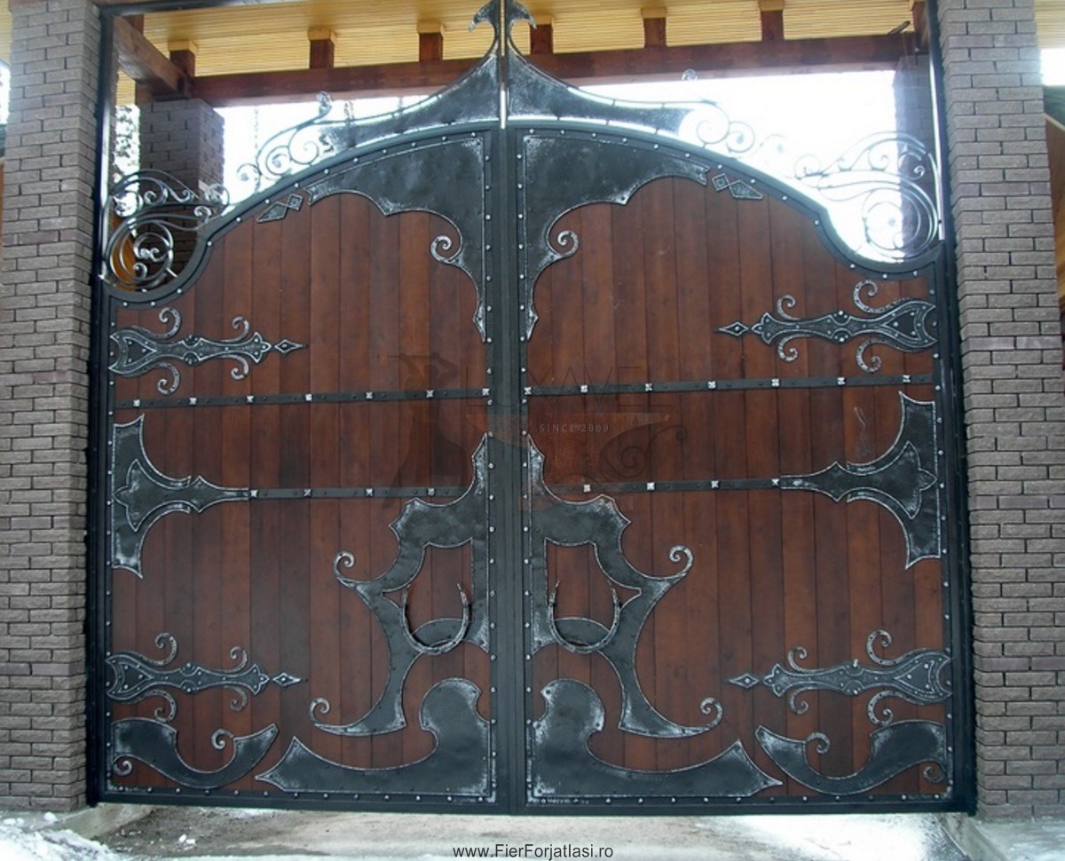 Va oferim poarta din fier forjat cu lemn model deosebit L029, realizata din fier forjat si lemn cu multa atentie si precizie pentru a putea oferi o solutie pentru calea de acces, sigura, solida, robusta si datorita elementelor decorative din fier forjat, poarta de acces capata o nota deosebita de eleganta.