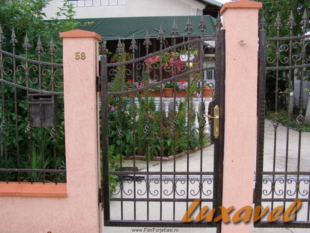 Va punem la dispozitie poarta din fier forjat modelul P124, realizata integral din fier forjat cu multa atentie si precizie pentru a putea oferi o solutie pentru calea de acces, sigura, solida, robusta si datorita elementelor decorative din fier forjat, poarta de acces capata o nota deosebita de eleganta.