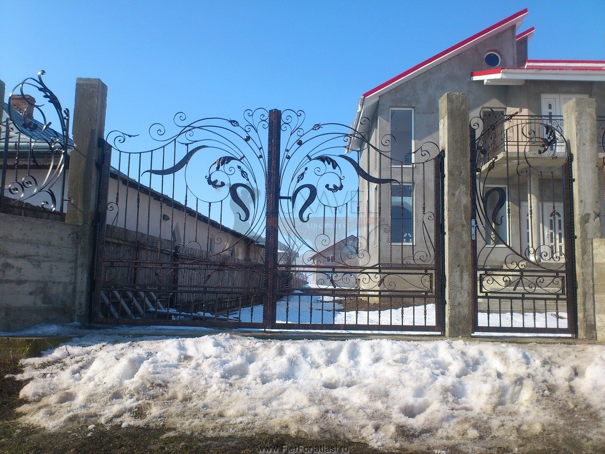 Va punem la dispozitie poarta din fier forjat modelul P137, realizata integral din fier forjat cu multa atentie si precizie pentru a putea oferi o solutie pentru calea de acces, sigura, solida, robusta si datorita elementelor decorative din fier forjat, poarta de acces capata o nota deosebita de eleganta.