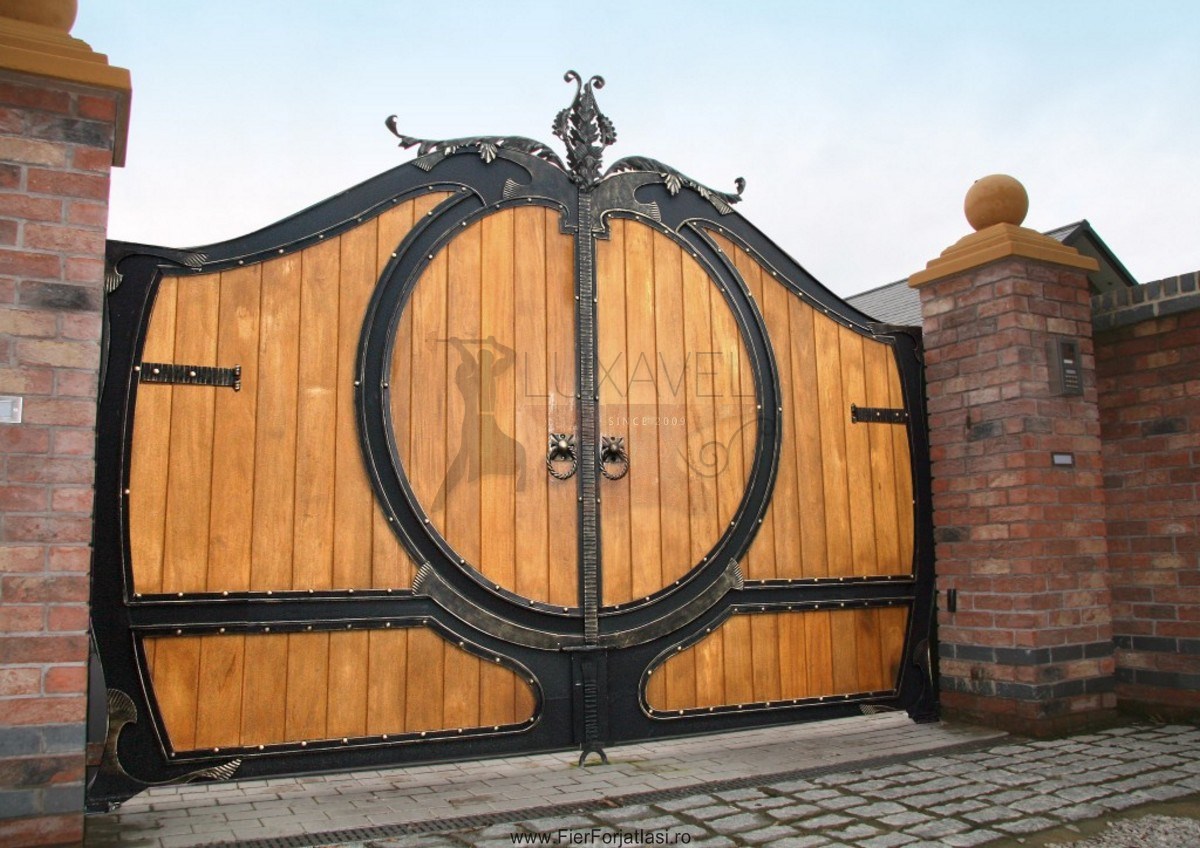 Va oferim poarta din fier forjat cu lemn model deosebit L012, realizata din fier forjat si lemn cu multa atentie si precizie pentru a putea oferi o solutie pentru calea de acces, sigura, solida, robusta si datorita elementelor decorative din fier forjat, poarta de acces capata o nota deosebita de eleganta.