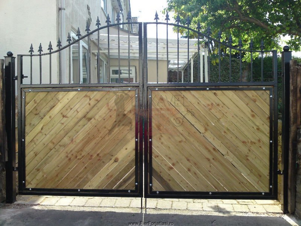 Va oferim poarta din fier forjat cu lemn model deosebit L033, realizata din fier forjat si lemn cu multa atentie si precizie pentru a putea oferi o solutie pentru calea de acces, sigura, solida, robusta si datorita elementelor decorative din fier forjat, poarta de acces capata o nota deosebita de eleganta.
