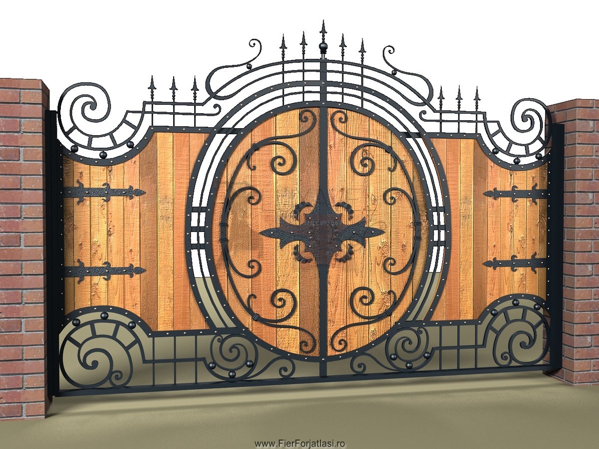 Va oferim poarta din fier forjat cu lemn model deosebit L041, realizata din fier forjat si lemn cu multa atentie si precizie pentru a putea oferi o solutie pentru calea de acces, sigura, solida, robusta si datorita elementelor decorative din fier forjat, poarta de acces capata o nota deosebita de eleganta.