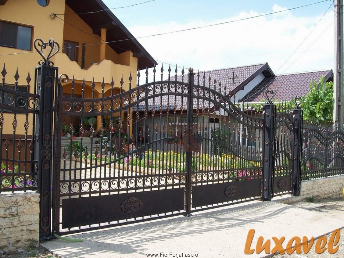 Va punem la dispozitie poarta din fier forjat modelul P001, realizata integral din fier forjat cu multa atentie si precizie pentru a putea oferi o solutie pentru calea de acces, sigura, solida, robusta si datorita elementelor decorative din fier forjat, poarta de acces capata o nota deosebita de eleganta.