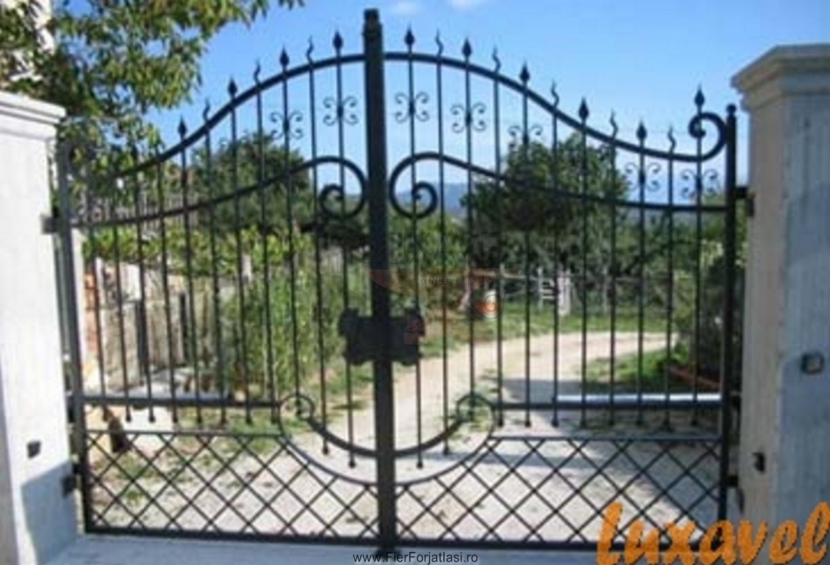 Va punem la dispozitie poarta din fier forjat modelul P058, realizata integral din fier forjat cu multa atentie si precizie pentru a putea oferi o solutie pentru calea de acces, sigura, solida, robusta si datorita elementelor decorative din fier forjat, poarta de acces capata o nota deosebita de eleganta.
