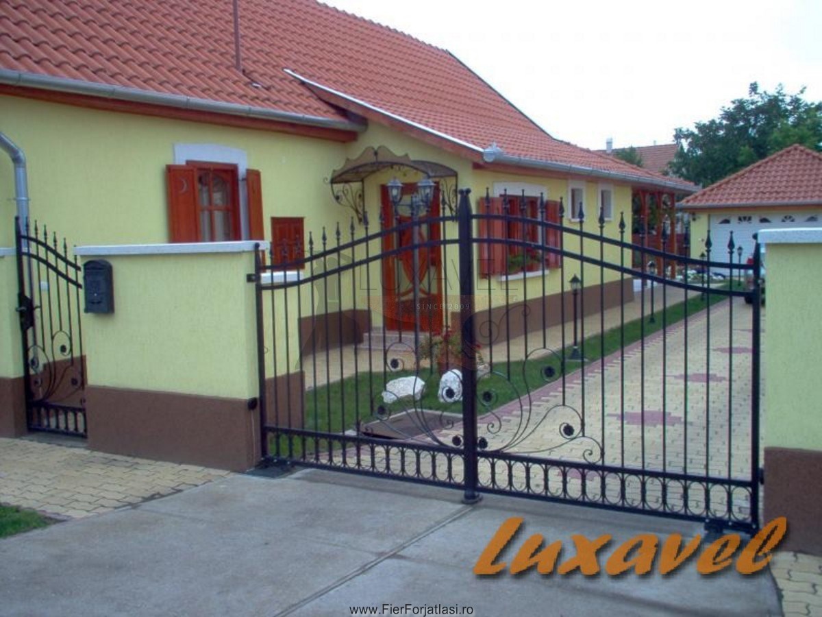 Va punem la dispozitie poarta din fier forjat modelul P130, realizata integral din fier forjat cu multa atentie si precizie pentru a putea oferi o solutie pentru calea de acces, sigura, solida, robusta si datorita elementelor decorative din fier forjat, poarta de acces capata o nota deosebita de eleganta.