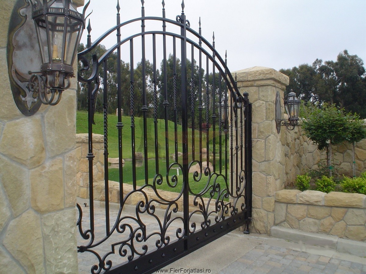 Va punem la dispozitie poarta din fier forjat modelul P164, realizata integral din fier forjat cu multa atentie si precizie pentru a putea oferi o solutie pentru calea de acces, sigura, solida, robusta si datorita elementelor decorative din fier forjat, poarta de acces capata o nota deosebita de eleganta.