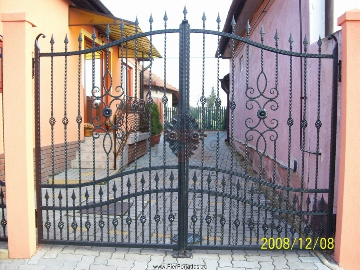 Va punem la dispozitie poarta din fier forjat modelul P172, realizata integral din fier forjat cu multa atentie si precizie pentru a putea oferi o solutie pentru calea de acces, sigura, solida, robusta si datorita elementelor decorative din fier forjat, poarta de acces capata o nota deosebita de eleganta.