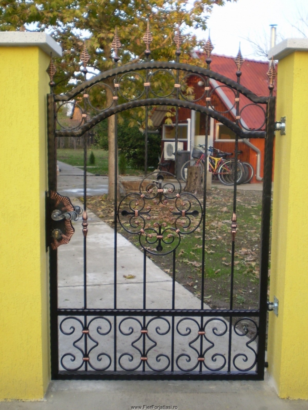Va punem la dispozitie poarta din fier forjat modelul P176, realizata integral din fier forjat cu multa atentie si precizie pentru a putea oferi o solutie pentru calea de acces, sigura, solida, robusta si datorita elementelor decorative din fier forjat, poarta de acces capata o nota deosebita de eleganta.
